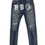 A printed BBC spaceman logo livens up paint-splattered straight-leg jeans cut from nonstretch denim with bold streetwear style.