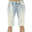 Slim-style shorts with a relaxed waist and a low rise. This light blue rocker stretch short is crafted from premium denim, vintage washed, and accented with rip, repair, and embroidery detailing to create a unique design.
