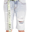 Slim-style shorts with a relaxed waist and a low rise. This light blue rocker slim short is crafted from premium denim and a rip and repair vintage wash to create a unique denim color combination. The leg narrows from the knee to the ankle. Utility belt included.