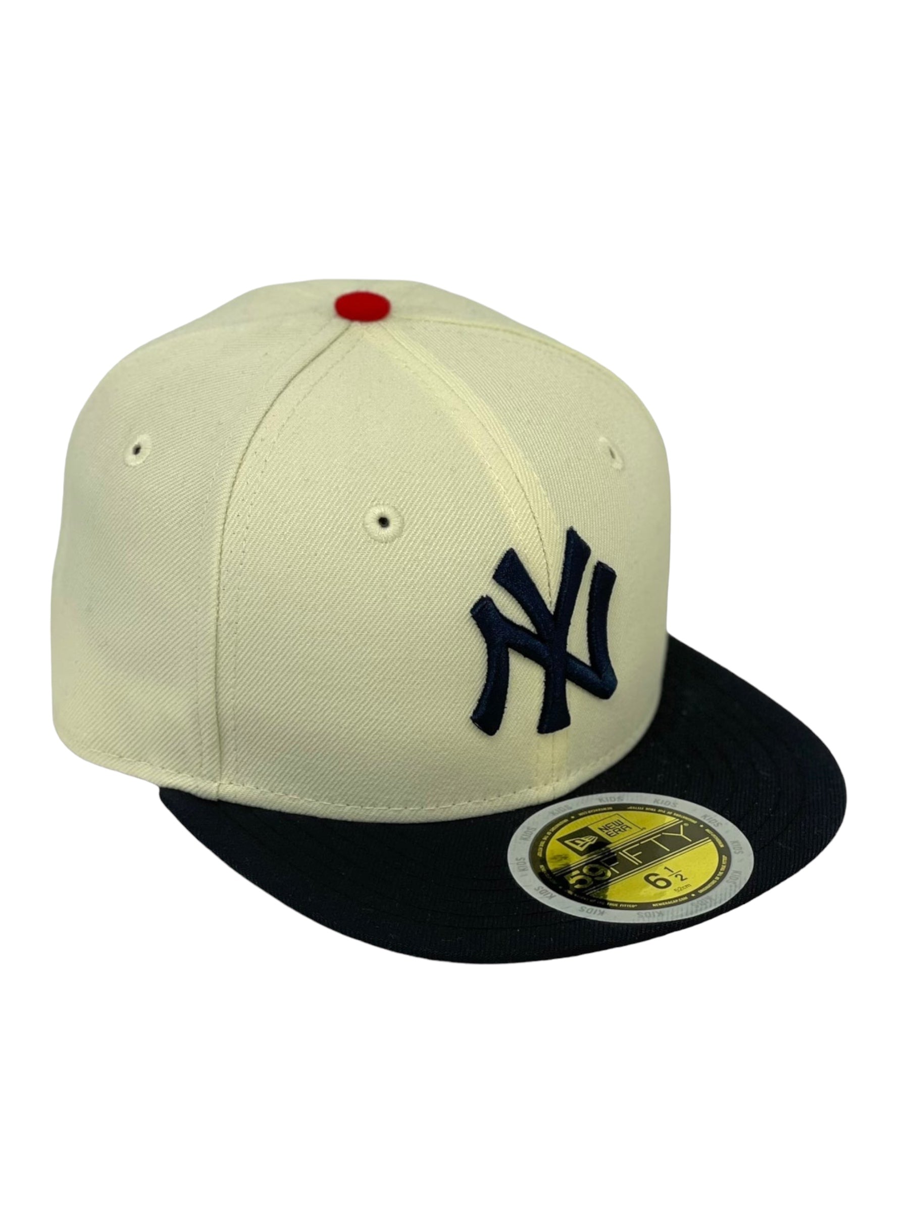 KIDS - NEWYORK YANKEES (OFF-WHITE) NEW ERA 59FIFTY FITTED (GREEN UNDER VISOR)